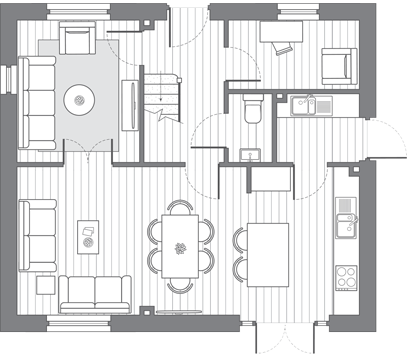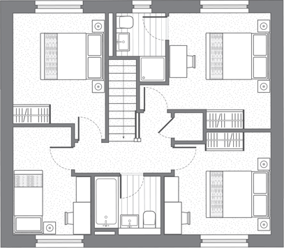 Plot 47 at Barrelmans Point is part of ‘The Boston’ collection. A spacious, four bedroom, double-fronted detached home, this superb house makes for the perfect family home. Equipped with a fantastic kitchen island and ample space for family living, residents of this expansive home will also benefit from a separate utility room, downstairs W/C and a home office. Three double and one single bedroom on the first floor complete this spacious house, with an en-suite adjoining the primary suite and a family bathroom serving the remaining bedrooms.